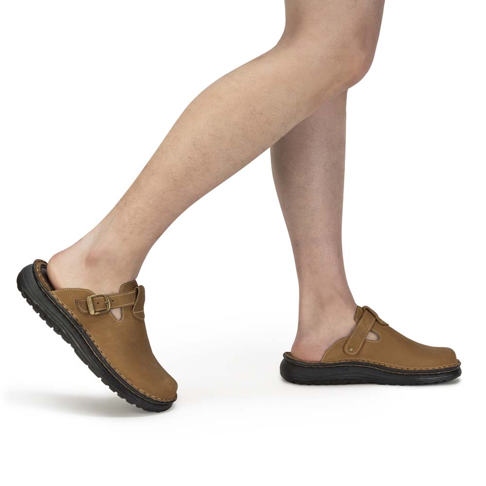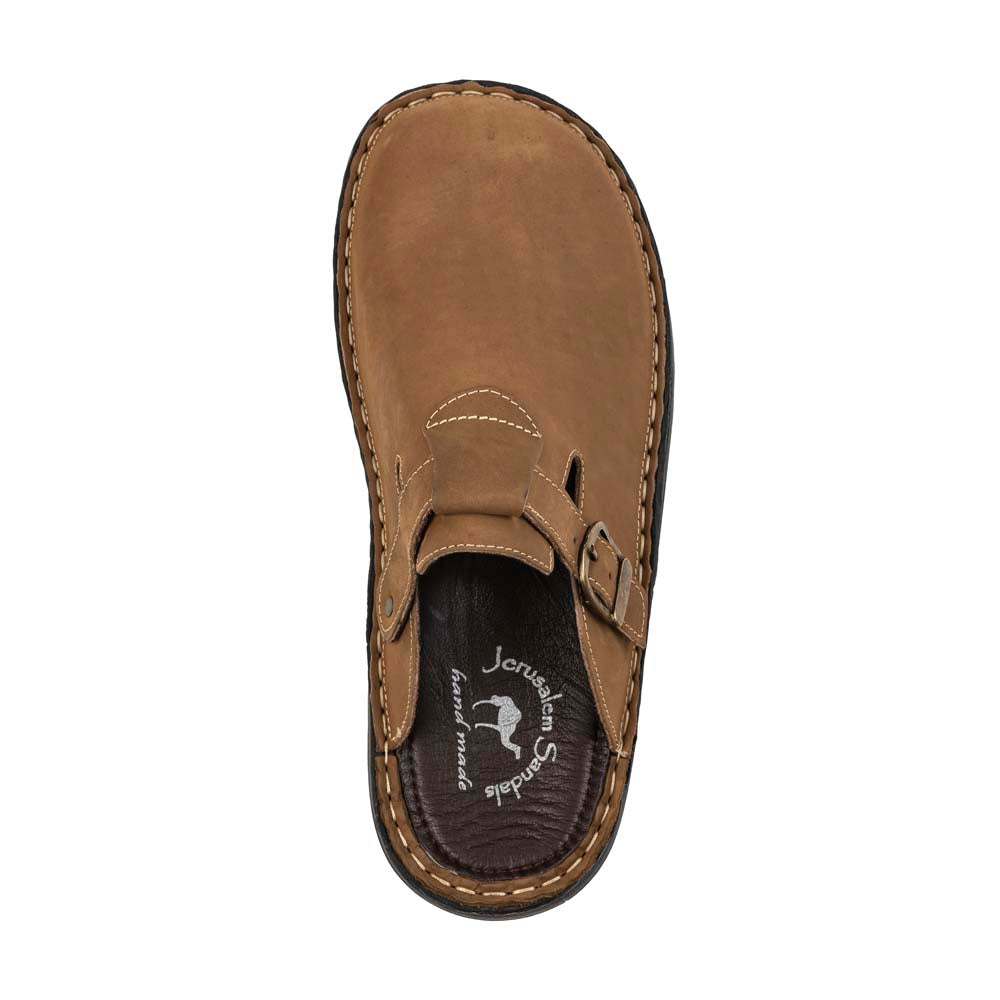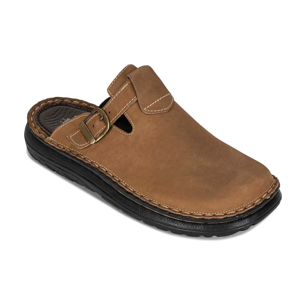 Batimag Tan Nubuck Leather Clog-Toe Sandal